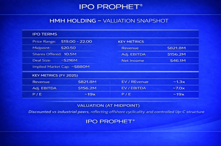 Ultimately, HMH’s IPO represents a play on a recovering offshore drilling cycle, anchored by a business model that emphasizes recurring revenue, capital efficiency, and mission-critical product positioning. The combination of stable margins, improving free cash flow, and a discounted valuation relative to peers creates a balanced setup, though execution through the next phase of the offshore cycle will remain the key determinant of long-term performance. In a market that is increasingly selective and focused on fundamentals, HMH enters the public arena with a profile that combines industrial stability with cyclical upside.