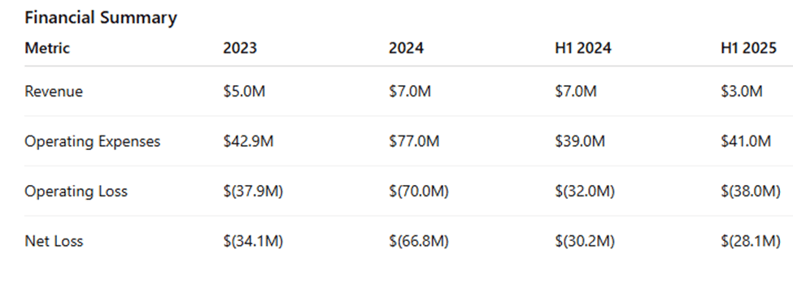 Despite promising clinical progress, Evommune remains deeply unprofitable. Like many clinical-stage biotech firms, the company has no product revenue and relies on financing to support its development programs. The financial data below underscores the company’s growing R&D investment and sustained losses: