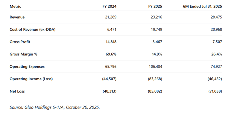 Below is a summary of Gloo’s recent financial results as disclosed in the S-1/A filing (fiscal year-end January 31):