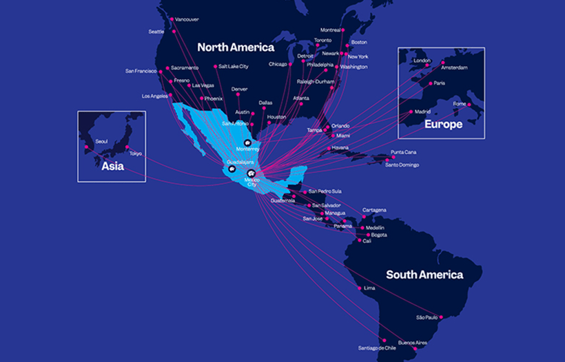 Aeroméxico differentiates itself as Mexico’s only FSC, offering a premium three-class service with long-haul connectivity across 22 countries and membership in the SkyTeam Alliance. Its strategic hubs in Mexico City (MEX), Guadalajara, and Monterrey provide unmatched reach to both corporate and leisure travelers. With the collapse of Interjet in 2020, Aeroméxico has consolidated its leadership at MEX and expanded into previously competitive routes. Following a successful Chapter 11 restructuring in 2022, the airline rightsized its cost structure and modernized its fleet. By June 30, 2025, Aeroméxico operated a fleet of 158 aircraft with an average age of just 8.4 years, significantly younger than U.S. legacy carriers.