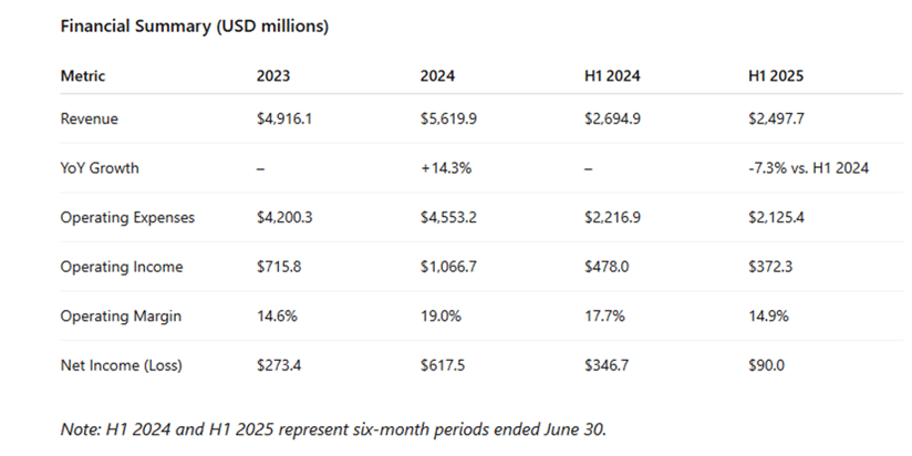 Financially, Aeroméxico has staged a strong recovery, though recent currency headwinds have weighed on results. In 2022, the airline posted a net loss of $64.2 million, but by 2023 had swung back to profitability with $273.4 million in income. That momentum carried into 2024, when revenues reached $5.62 billion—up 14.3% year over year—while net income surged to $617.5 million and operating margins expanded to 19%, among the strongest in the airline industry.