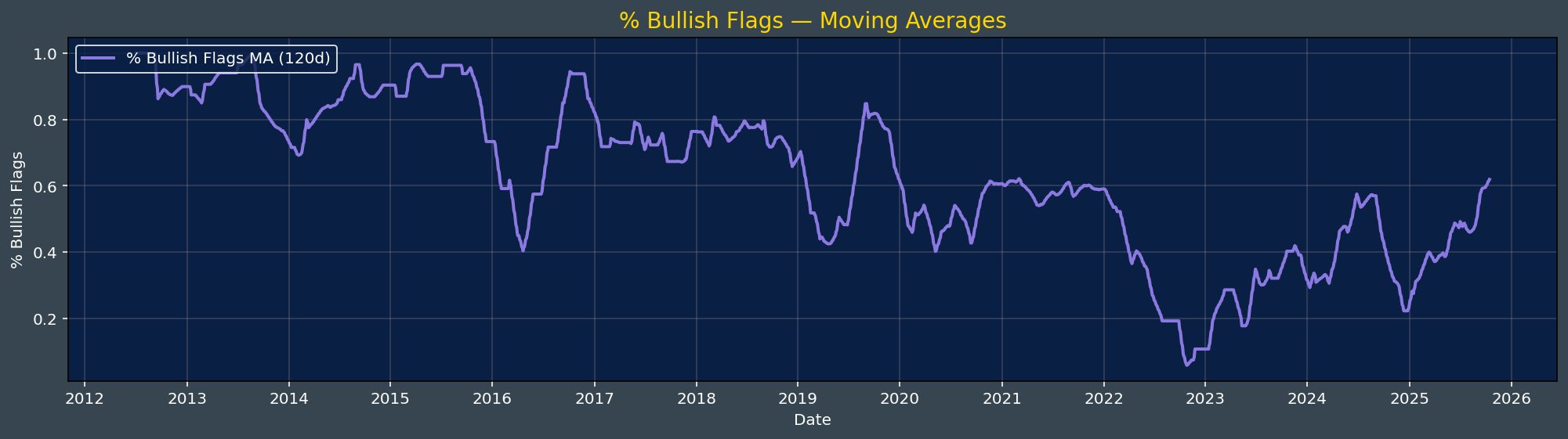 The Bullish Flag series transitions us from broad market observation to proprietary signal behavior.